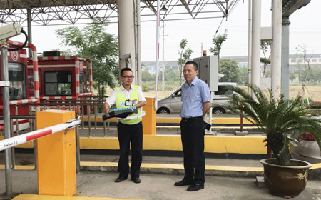 圖為集團副董事長、總經理張建平在溫嶺西收費所檢查