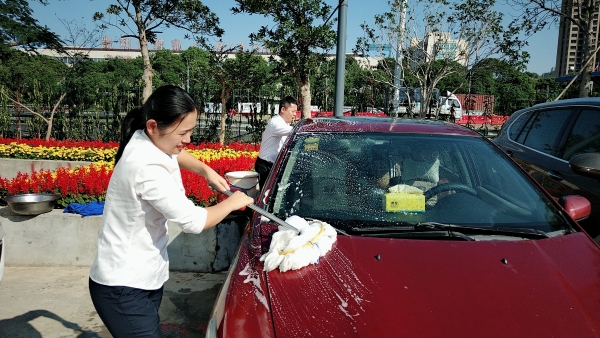 黨員服務(wù)群眾免費洗車 “等下車鑰匙拿給黨員同志,他們幫你免費洗車。”收費員張裴裴一上班就碰到這等好事。 11月6日上午,溫嶺西收費所黨支部組織黨員在所內(nèi)開展了免費義務(wù)洗車活動,一個上午共清洗10多輛汽車,受到群眾員工的好評。